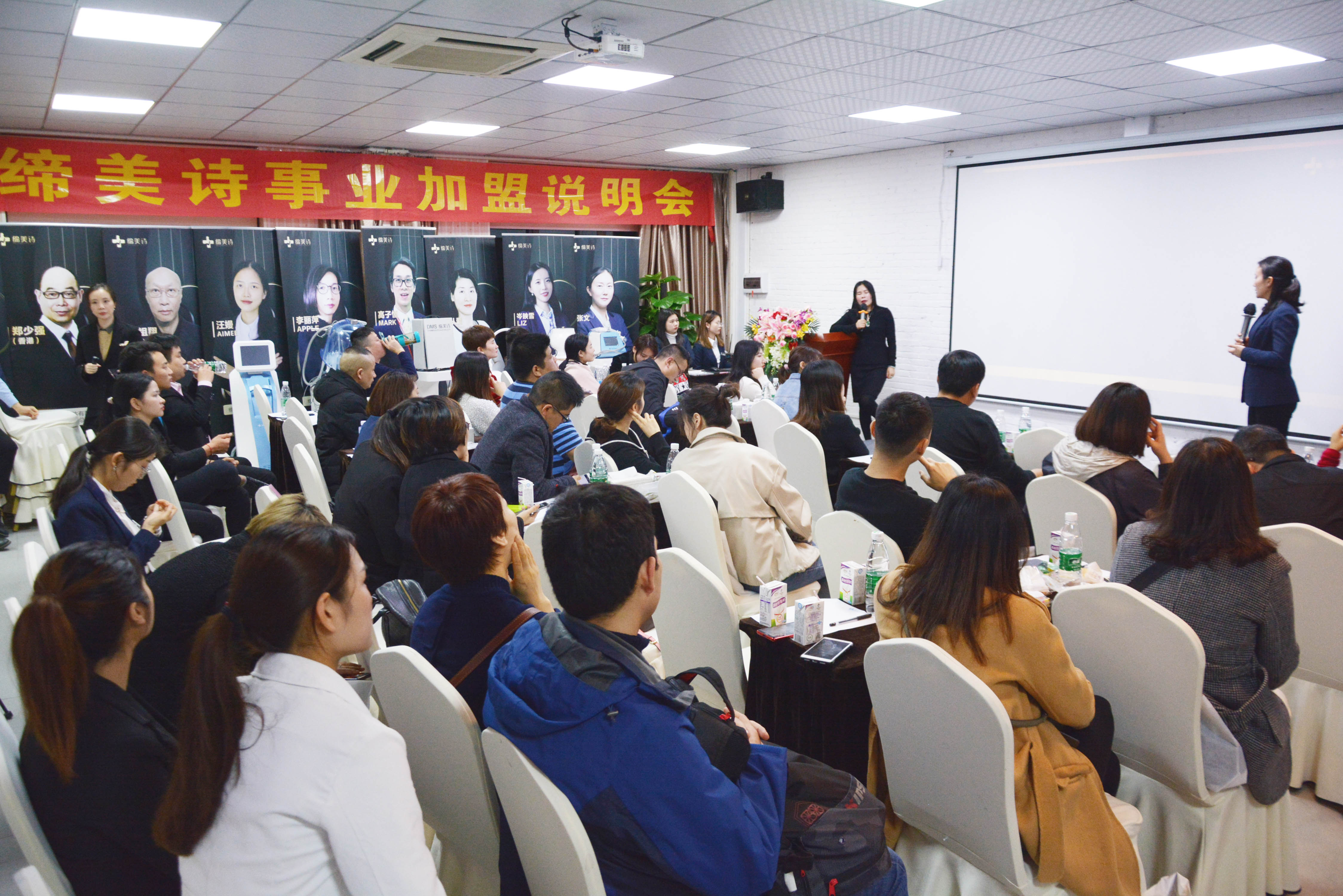 缔美诗展位呈现出高冷的专业气场,为它的高调主题奠定了基础。现场很多投资者表示,来之前对缔美诗是做了“功课”的,对它的专业高度认可。下午,很多有意向者跟随缔美诗的工作人员前往缔美诗运营中心进行进一步的了解。缔美诗组织了干货满满的事业说明会,会后有诸多加盟商现场签约。